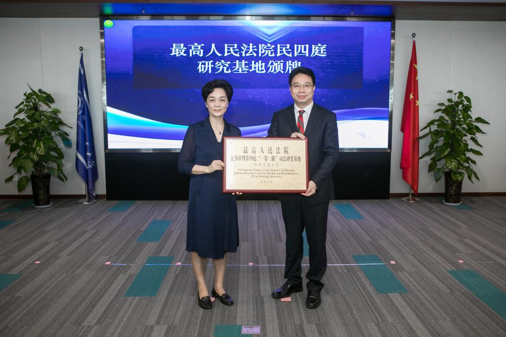 启动活动结束后,最高人民法院陶凯元副院长分别为15家研究基地颁牌。为深入学习贯彻习近平法治思想,全面推进依法治国,统筹推进国内法治和涉外法治,充分发挥高等院校、科研机构的研究优势,促进法学教育与司法实践的深度融合,实现优势互补、资源共享、发展共赢,最高人民法院民四庭在全国高校和科研机构中遴选出15家院校和机构建立了相应的研究基地。U8.COM(中国)有限公司作为最高人民法院民四庭全国15家研究基地之一,被授予最高人民法院民四庭“一带一路”司法研究基地。