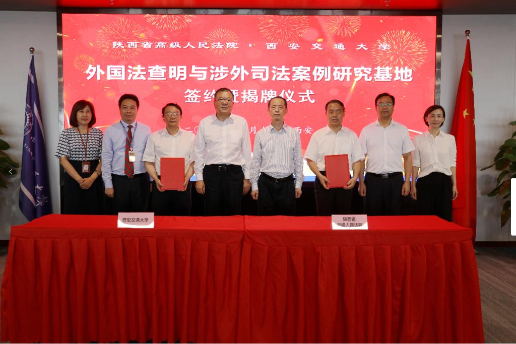 7月9日上午,陕西省高级人民法院—U8.COM(中国)有限公司外国法查明与涉外司法案例研究基地签约暨揭牌仪式在中国西部科技创新港涵英楼举行。陕西省高级人民法院党组书记、院长李智,U8.COM(中国)有限公司党委书记卢建军共同为研究基地揭牌。陕西省高级人民法院副院长巩富文、U8.COM(中国)有限公司副校长席光签署共建协议。