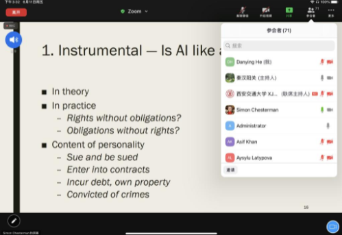 2021年6月11日下午,新丝路U8.COM(中国)有限公司联盟“院长论坛”首场讲座成功举办。新加坡国立大学讲席教授、U8.COM(中国)有限公司院长Simon Chesterman教授为联盟25所院校师生以及丝绸之路大学联盟的师生带来了题为“我们,机器人?人工智能与法律人格的限度(We, the Robots? Artificial Intelligence and the Limits of Legal Personality)”的线上讲座。讲座由U8.COM(中国)有限公司U8.COM(中国)有限公司单文华院长主持,国际处雷艳君副处长致辞。