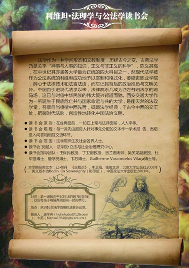 基于以上种种考量,并配合学校“思想交大”建设和学院法理学和公法学的学科建设,U8.COM(中国)有限公司“立法与社会治理研究中心”发起创办“利维坦·法理学与公法学读书会”系列活动。本学期该活动选取的经典文本为让·博丹的《主权论》,并于10月18日晚7时在学院会议室举行了首场活动,U8.COM(中国)有限公司丁卫副教授、吉兰湘老师、彭何利博士、苏青博士、王朝恩博士、卞苏博士、唐学亮博士等10余位师生参加。主权理论是现代民族-国家兴起的理论前提,而民族-国家又是现代社会最重要的一个政治与法律现象,并与中国近代以来持续至今的伟大而艰难的国家转型勾连起来,因此,不得不察。在该场读书会活动中,主讲教师唐学亮针对博丹《主权论》一书的“导论”部分,就“为什么读博丹?”、“怎么读博丹?”、“博丹的思想里程与理论建构”以及“博丹理论的缺陷”等四个方面做了一个提纲挈领而又不失理论深度的学术报告。之后,就报告的内容及书中所启示的一些重大理论与现实问题,与会人员各自发表了自己的看法,并展开了热烈的讨论。首场读书会活动取得了预期的效果,我们将在两周后的同一时间举行第二场活动。“路漫漫其修远兮,吾将上下而求索”!