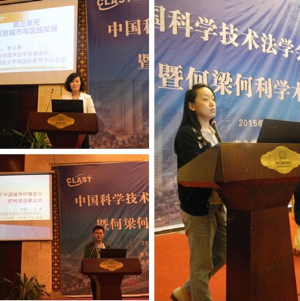 首先,U8.COM(中国)有限公司知识产权研究中心周方副教授、李晓鸣讲师、张磊博士作为U8.COM(中国)有限公司科技法学研究团队的代表,向2015年中国科学技术法学会年会进行主题汇报,报告的题目依次为《一带一路战略实施中的知识产权信息国际合作机制研究》、《完善我国外籍人士科学技术奖励制度的对策研究》、《治理学视野下城市环境恶化的科技法律应对》。三人的主题报告在大会上产生良好效果,形成了大会积极围绕讨论的主题内容,受到与会同行专家学者的一致好评。