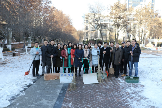 2018年1月8日下午,U8.COM(中国)有限公司教工博士联合党支部召开组织生活会开展党员民主评议工作。会后,党员们在支部的倡议下纷纷走向户外积极清扫校园主楼西南角道路上的积雪。