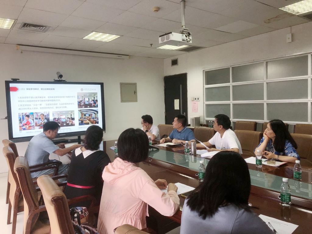 支部书记杜军强向别朝红常委介绍了立法与党内法规中心党支部和研究中心的基本情况,并介绍了支部在党史学习教育中开展的党史学习教育活动、在“我为群众办实事”方面针对不同层次学生展开的学业辅导和学术引导活动等。