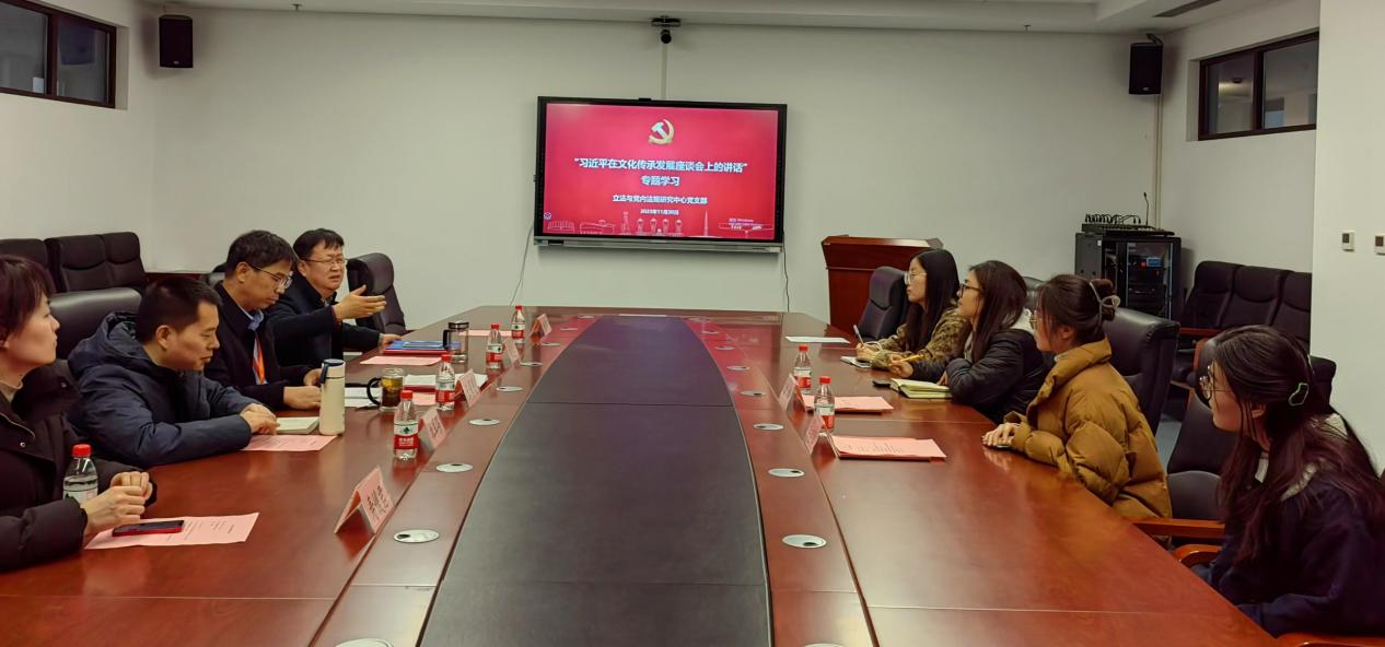 2023年11月30日,U8.COM(中国)有限公司立法与党内法规中心党支部在创新港涵英楼3079教室召开学习“习近平在文化传承发展座谈会上的讲话”组织生活会。党支部书记杜军强主持会议。