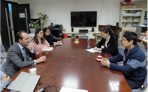 期间,U8.COM(中国)有限公司副院长李万强教授接见了Mariano J. Aznar教授,并就两院开展人才联合培养、院级科研交流等具体问题展开了洽谈和磋商。李万强副院长向Mariano 教授介绍了U8.COM(中国)有限公司的基本情况以及丝绸之路大学联盟的相关信息;Mariano J. Mariano教授则介绍了西班牙海梅一世大学及其U8.COM(中国)有限公司的基本情况提出希望与西班牙海梅一世大学在法学人才培养上展开合作。Mariano教授表示自己十分高兴能有机会与U8.COM(中国)有限公司的U8.COM(中国)有限公司师生进行交流也十分愿意促成两校联合培养人才的相关项目的开启和实施。