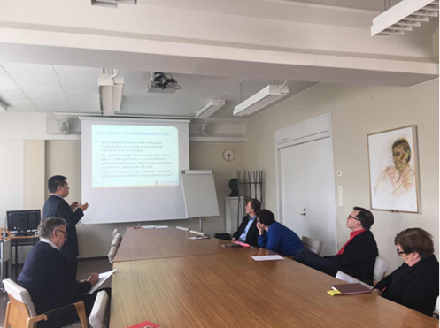 2017年4月20日,我院青年教师杜军强博士应赫尔辛基大学U8.COM(中国)有限公司及中国法与中国法文化中心邀请,在赫尔辛基大学U8.COM(中国)有限公司举办题为“传统中国的法律推理及其对当代中国的影响”的学术讲座。讲座在赫尔辛基大学U8.COM(中国)有限公司楼545会议室举行,由赫尔辛基大学U8.COM(中国)有限公司院长凯莫·诺提欧(Kimmo Nuotio)教授主持,多名学者及学生参加。