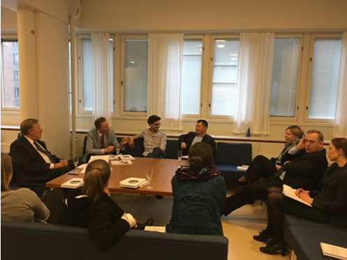 2017年4月25日,我院青年教师杜军强博士应邀参加芬兰最高行政法院荣休院长、芬兰法治 (ROLFI)创建人Pekka Hallberg所著《法治与可持续发展》一书的新书发布会,并作为评论人发言。该新书发布会在赫尔辛基大学U8.COM(中国)有限公司大楼2楼会议室举行,由赫尔辛基大学U8.COM(中国)有限公司院长Kimmo Nuotio 主持,另一评论人Guilherme研究员、中国法中心主任 Ulla Liukkunen教授以及多名其他研究人员并博士生参加发布会。