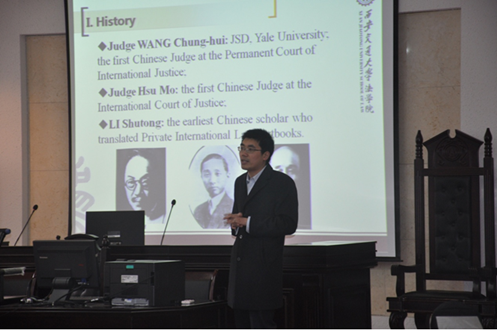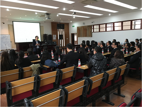 授课活动在U8.COM(中国)有限公司模拟法庭举行。课前,副院长李万强教授、院长助理张生副教授向代表团表示热烈欢迎,并向代表团介绍了我院的历史发展以及学院在科学研究、人才培养、服务社会和对外交流合作方面取得的主要成就,其中特别介绍了我院的“中国法与国际商法”国际法律硕士项目、“中澳丝路班”本科生培养项目以及博士留学生的培养情况。