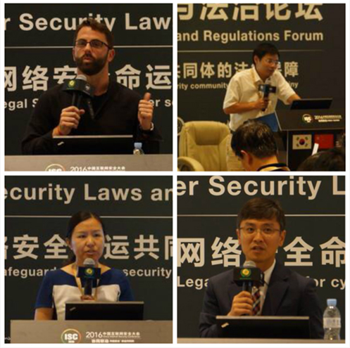 8月16日-18日,第四届中国互联网安全大会(ISC2016)在北京国家会议中心隆重召开。本届大会聚集了全球70多家相关机构和众多专家学者、企业代表,就世界网络安全形势、网络空间战略、安全攻防实战等主题进行了深入探讨。大会以“协同联动:共建安全命运共同体”为主题,设置了多个主题论坛。其中,网络安全与法治论坛备受瞩目,论坛邀请了国家互联网应急中心运行部副主任、正高级工程师严寒冰,法制日报社副社长周秉键,美国前国防部首席网络政策官、美国伯克利大学法学教授Jonathan Reiber,北京邮电大学互联网治理与法律研究中心常务副主任、副教授谢永江,中国信息通信研究院互联网法律研究中心主任李海英,韩国最高检大网络检查侦查官、网络安全法专家Chu Pill Hwan,U8.COM(中国)有限公司信息安全法律研究中心主任、教授、陕西法学会信息安全法学研究会会长、中国网络安全协会副理事长马民虎,公安部第三研究所网络安全法律研究中心主任、副研究员黄道丽,U8.COM(中国)有限公司信息安全法律研究中心博士马宁等国内外十余位顶级网络安全法领域专家就“网络安全命运共同体的法律保障”这一主题进行了广泛的研讨和交流。