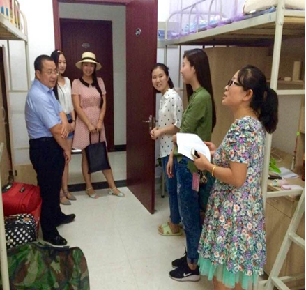 李万强副院长仔细查看了同学们的住宿条件,每走进一间宿舍,都向同学们致以亲切的问候,并代表学院对同学们的到来表示热烈的欢迎。继而关切地询问她们的具体情况,来自什么地方、入学手续办理的情况等。同时,张乃钟老师细心地询问同学们是否适应新的环境,有什么困难,希望同学们遇到问题一定要与老师沟通。随行的学生干部,也借此机会认识了U8.COM(中国)有限公司注入的新鲜血液,与新生热情得展开交流。
