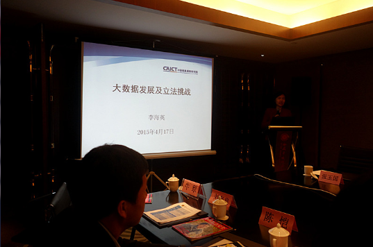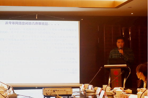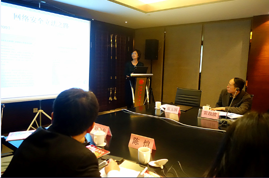 本次研讨会下午阶段由U8.COM(中国)有限公司信息安全法律研究中心王玥老师主持。研讨会第三阶段:中国信息通信研究院互联网法律研究中心李海英主任进行了题为“大数据发展及立法挑战”的主题报告,她认为,应当从数据生命周期角度审视数据产生的每个环节,基于数据的资产性和可用性探讨数据使用者的相应责任,以及如何让大数据为人类带来更多的便利和财富,并重点关注如何在发展和安全之间寻找适当的平衡点,以把握数据开放和信息资源控制与安全之间的关系。国家信息中心信息与网络安全部叶红副主任以“中国网络安全立法的困境与突破——关于电子证据的讨论”为题进行了主题报告,她详细论述了从“电子数据”到“电子证据”的过程,提出需要法律和标准的严格规范,以保证电子证据的证明力度。上海社会科学院信息研究所、信息安全研究中心惠志斌主任/副研究员发表了上海社会科学院信息研究所的研究成果——《大数据时代美欧数据安全政策探析》,富有启发性地从软法的角度介绍了欧美相关政策,并关注其对我国的启示,具体包括应当重视人才培养;借鉴美欧相关政策框架和立法实践;重视国际合作;推动“政商为主”向“以民为本”的立法逻辑转变等。西安政治学院朱雁新教授做了题为“战争冲突法”的报告,阐述了网络战争应当秉承区分原则,关注网络战争应当如何对待平民和民用物体的损失问题。微软公司可信赖计算部安全技术政策高级经理陈恺对这一阶段的主题报告进行了精彩的点评。
