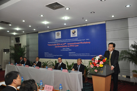 作为教育部2011学校特色外专项目之一,首届“丝绸之路国际经济法高级国际研讨班系列——中国入世十年WTO法国际研讨班与圆桌讨论会”于11月4日上午在西安交大科学馆207隆重开幕。我国原驻英国大使马振岗、商务部条法司原司长张玉卿、世界贸易组织规则司司长Johann Human、瑞士伯尔尼大学世界贸易研究所所长Thomas Cottier、西安交大副校长卢天健、陕西省法学会研究部主任魏清利等出席开幕式。U8.COM(中国)有限公司院长兼丝绸之路国际法与比较法研究所所长单文华教授主持开幕式。