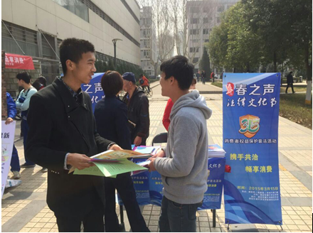 3月15日,U8.COM(中国)有限公司研究生分会与校工会、碑林区消费者协会、碑林区工商局联袂在康桥苑西广场、梧桐苑门口以及东二楼彩虹桥下举办了以“携手共治,畅想消费”为主题的普法宣传咨询活动。
