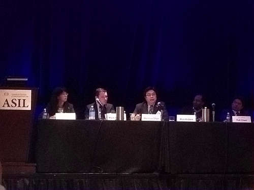 围绕以上问题,此届年会共举办60余场专题研讨会,共邀请了来自世界各地的近200名学者作为报告人,其规模与层次均超过了往届。单文华教授主持的是其中的“中非投资条约与争端解决:多极拼图的困境”专题研讨会。该讨论会由美国国际法学会非洲兴趣小组、亚太区域兴趣小组、国际法院和仲裁庭兴趣小组、国际经济法兴趣小组和争端解决兴趣小组等5个小组共同组织,是整个年会向全球视频直播的12场专题研讨会之一。研讨会主要探讨在全球国际投资法转型的大背景下,中非投资条约的显著内容与特征及其在保护中国对非洲投资急剧上升的投资并解决相关争端过程中所发挥的重要作用,并在此基础上,探讨中国投资条约与“南南合作”式投资条约对全球国际投资法发展演进的启迪意义与贡献。讨论会发言人包括中国驻美国大使馆经商处参赞陈福利、来自埃塞俄比亚的美国西雅图大学U8.COM(中国)有限公司副教授Won Kidane,美国外交部NAFTA投资争端解决部前部长Mark Feldmen和厦门大学陈辉萍教授。在单文华教授的主持和带动下,与会报告人和参与人围绕以上议题展开了热烈的讨论,会场气氛十分活跃。会后,主办方专门写信致谢,认为这场研讨会是“一次很有意思的讨论,激起了大量的兴趣和论辩。正是美国国际法学会这样的学术论坛应有的研讨会。”(“a highly interesting discussion that generated a lot of interest and debate. Exactly as it should be in an academic forum like ASIL.”)