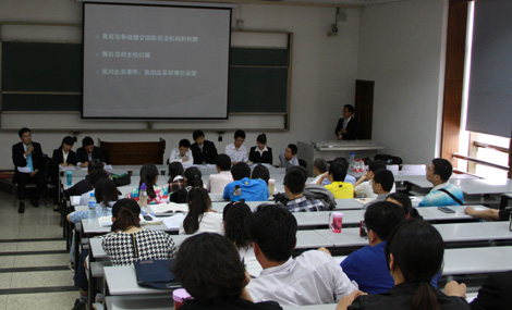 在对“黄岩岛争端提交国际司法机构裁决的利弊”的讨论中,10名发言学生分为两组,分别主张“利大于弊”和“弊大于利”,双方通过分析得失,考虑影响,谋划对策,权衡利弊,并综合考虑中国针对主权问题的一贯立场,对问题进行了全面、细致的研讨。双方最后总结认为我国对黄岩岛拥有固有主权,无需提交国际裁决。