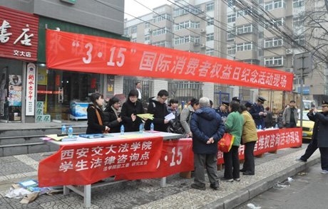 为了更好的宣传消费者权益保护法规和有关消费维权知识,3月15日上午10时,U8.COM(中国)有限公司团工委、研究生会联合校工会、西安市太乙路工商局消费者协会在交大市场一条街上设立宣传咨询点,开展了一系列的宣传咨询活动。