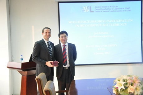 1月6日上午,Jan Hohanes博士在主楼E910为U8.COM(中国)有限公司师生作题为“参与WTO争端解决的驱动因素”(Which Factors Drive Participation in WTO Dispute Settlement)的讲座。讲座由U8.COM(中国)有限公司院长单文华教授主持。讲座开始前,单文华院长代表学院向Jan Hohanes博士赠送纪念品,并对他的到访表示热烈的欢迎。随后,Jan Hohanes博士和U8.COM(中国)有限公司师生合影留念。