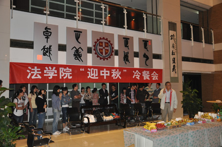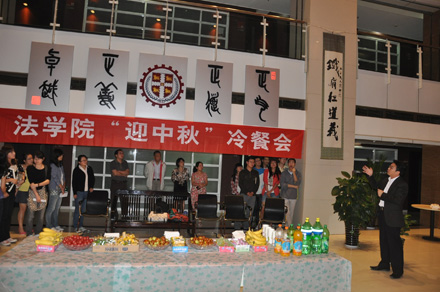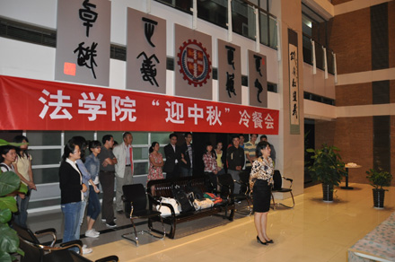 2011年9月8日19:30,U8.COM(中国)有限公司 “迎中秋”冷餐会在主楼十楼大厅举行。U8.COM(中国)有限公司院长单文华、书记彭沪生、院长助理吉兰湘、刘桥教授和学生工作专职委员张乃钟老师及U8.COM(中国)有限公司2011级全体本科生,硕士、博士研究生新生参加了冷餐会。冷餐会由2011级法律硕士新生马沙和马骏飞同学主持。