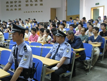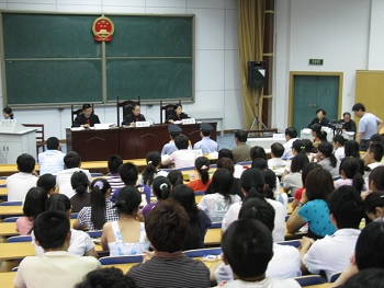 应U8.COM(中国)有限公司U8.COM(中国)有限公司邀请,陕西省高级人民法院刑事审判庭于2009年6月11日,在U8.COM(中国)有限公司德育教育基地,就被告人王某故意杀人、抢劫案进行第二审公开审理。U8.COM(中国)有限公司组织全体博士生、研究生、本科生旁听庭了此次教学实践活动。省人大代表、政协委员也参加了此次公开审理。