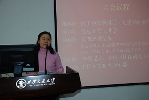 1月11日下午,U8.COM(中国)有限公司第一届工会委员选举暨2008年工作总结大会在主楼E703举行。校工会副主席谢雪,U8.COM(中国)有限公司总支书记、院长单文华等院领导出席会议。会议由U8.COM(中国)有限公司总支副书记、副院长王保民主持,U8.COM(中国)有限公司全体教职工参加了大会。