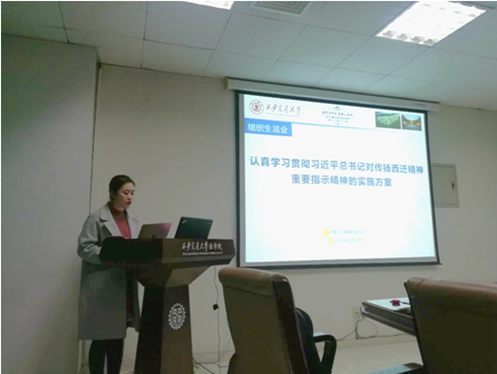 通过学习,党员们深受教育,纷纷表示要深入学习贯彻西迁精神,做具有“胸怀大局、无私奉献、弘扬传统、艰苦创业”西迁精神的新传人。刘敏丹同学表示:六十一年前,交大老教授们响应党的号召,毅然决然地从上海来到西安,从此,他们在交大这片土地上,为教育和科学发展贡献了一生。作为交大的一名研究生,我们更应该向这些西迁老教授们学习,学习他们不怕苦、不怕累的精神,学习他们为科研奉献的精神。科研活动需要坚忍不拔的毅力。诚然,科研工作并不总是一帆风顺的,所以遇到困难时,我们要有勇往直前的精神,不怕失败,愈挫愈勇,不断攻克难关,争取为交大的科研工作贡献自己的一份力量,为交大建设“双一流”大学做出自己的努力!