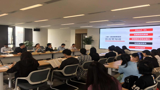 随后海普睿诚律师事务所代表人员和交大U8.COM(中国)有限公司的同学们在会议室就坐。首先由海普睿诚律师事务所行政总监种贵兴表达了对U8.COM(中国)有限公司马治国教授一行的欢迎及感谢;其次由运营总监孙婷详细讲解了海普睿诚律师事务所的规模、业务领域、专业建树、发展历程和社会公益等情况;再由律所最年轻的高级合伙人王奇律师以其自身的从业经历为同学们讲授了成为一名律师所应具备的能力与素质。