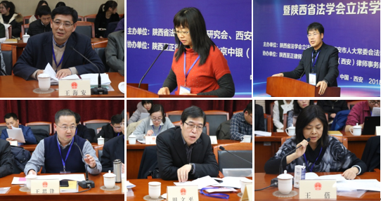 开幕式后,会议进入研讨环节。第一部分主题发言由西北大学U8.COM(中国)有限公司院长王思锋教授主持。西安市人大常委会法工委副主任王海安作了以“坚持新时代立法工作原则,不断完善立法工作机制,切实提高立法质量”为主题的发言,强调新时代立法工作要坚持党委的领导,坚持科学立法、民主立法、依法立法的基本原则。西北政法大学立法研究中心主任朱继萍教授就“地方立法精细化的几个问题”进行发言,指出提高立法质量已成为当前立法工作的主要问题,并针对地方立法工作的精细化提出“慎出”和“细作”两大要求。最后,西北大学国家法律与党内法规协同治理研究中心主任潘怀平教授结合自身经历就“地方立法的质量与红头文件的清理问题探讨”主题作了发言。陕西省人大常委会法制工作委员会法规三处处长田文平、陕西师范大学哲学与政府管理学院副院长王蓓教授先后对三位发言人的发言做出精彩点评。