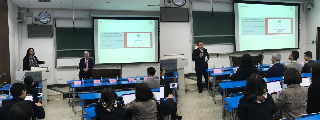 应U8.COM(中国)有限公司U8.COM(中国)有限公司院长单文华教授邀请,最高人民法院国际商事法庭首批专家委员会委员、国际著名仲裁员Emmanuel Gaillard教授日前来访U8.COM(中国)有限公司U8.COM(中国)有限公司开展座谈交流,并做了“中国国际投资仲裁常设论坛”的首场讲座——“国际投资仲裁:不断演变中的条约法”。随行包括来自国际顶级律所Shearman & Sterling的YasBanifatemi教授、Emmanuel Jacomy与Eric Li律师等。