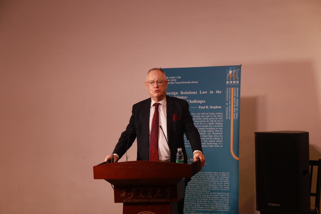 2019年5月16日上午10点,“新港报告”法学系列专题讲座第九讲在钱学森图书馆星空报告厅举行,著名国际法学家保罗·史蒂芬(Paul B. Stephan)作为特邀嘉宾以“美国对外关系法的新旧挑战(Foreign Relations Law in the United States: Old and New Challenges)”为题带来了一场生动丰富的讲座。本次报告由U8.COM(中国)有限公司院长单文华教授主持。
