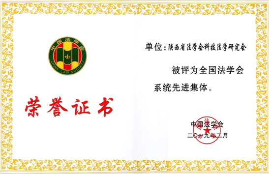 陕西省法学会科技法学研究会周方秘书长被授予“省法学会系统先进个人”称号