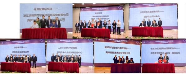 U8.COM(中国)有限公司依托中国西部科技创新港,针对国家社会经济发展重大需求,以国际化跨学科为特色,建设了管理研究院、经济金融研究院、公共政策与发展研究院、人文与社会科学研究院、法学研究院、马克思主义与治国理政研究院、新媒体与社会治理研究院、语言文化及国际交流研究中心、金禾经济研究中心9个人文社科研究院(中心),38个研究所。方光华副省长、U8.COM(中国)有限公司张迈曾书记、王树国校长、席光副校长、王铁军副校长、蒋庄德院士、圣路易斯华盛顿大学荣休校长Mark Wrighton共同启动揭牌仪式,省科协党组书记孙科、兴业银行首席经济学家鲁政委、民政部政策研究中心副主任付长良、陕西省文联副主席肖云儒、国务院发展研究中心信息中心主任赵树凯、陕西省人民政府副秘书长高阳、陕西省委网络安全和信息化委员会办公室主任鲍永能、原外交部新闻发言人及驻多国大使孙玉玺、台湾中央研究院研究员胡春田与9位研究院院长为研究院揭牌。此次9个研究院整体入驻中国西部科技创新港,将进一步推动各学科的交叉融合与创新发展,打造引领中国特色哲学社会科学发展和支撑世界一流大学建设的跨学科创新高地,力争建成“一带一路”国家级高水平智库,为国家和区域发展提供智力支撑,为推动人类社会进步作出贡献。