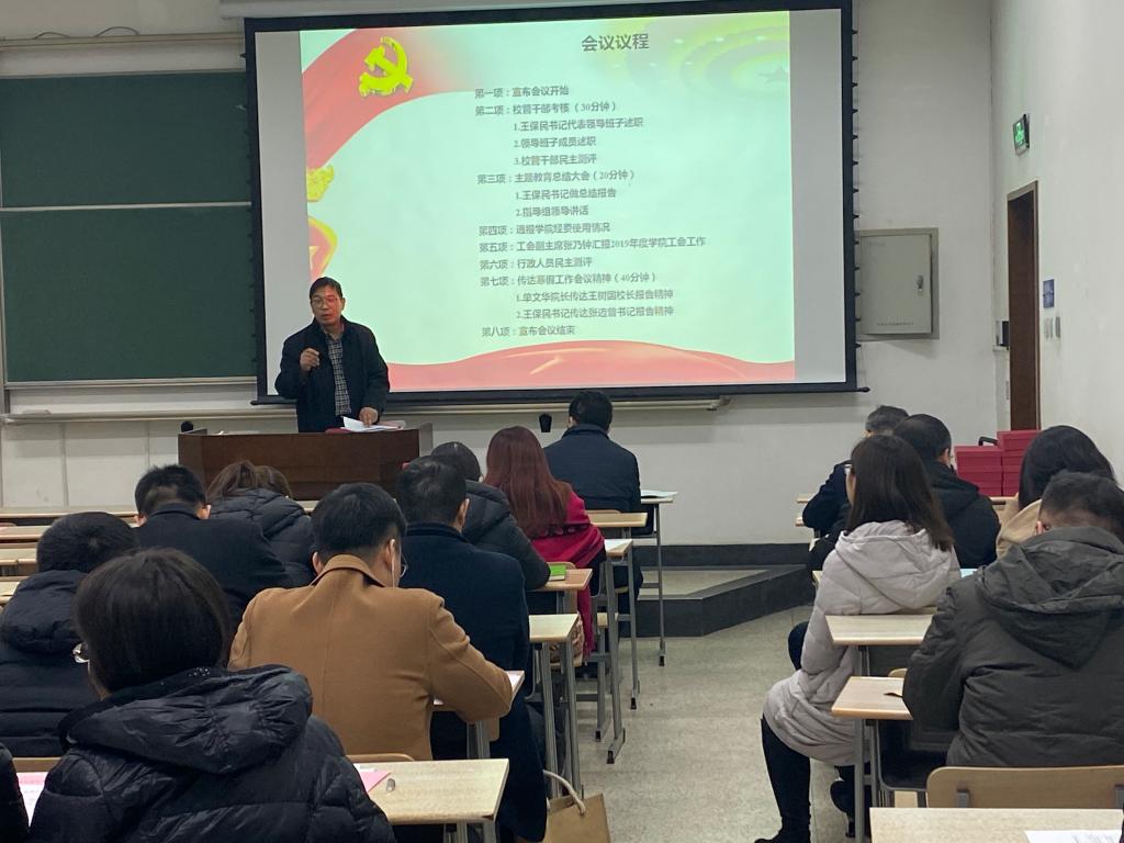 2020年1月11日下午,U8.COM(中国)有限公司在主B-105教室召开全院大会全面传达学校寒假工作会议精神,总结2019年工作业绩,部署2020年工作安排。U8.COM(中国)有限公司领导班子成员和全体教职工参加了此次会议。会议由U8.COM(中国)有限公司工会副主席张乃钟主持。