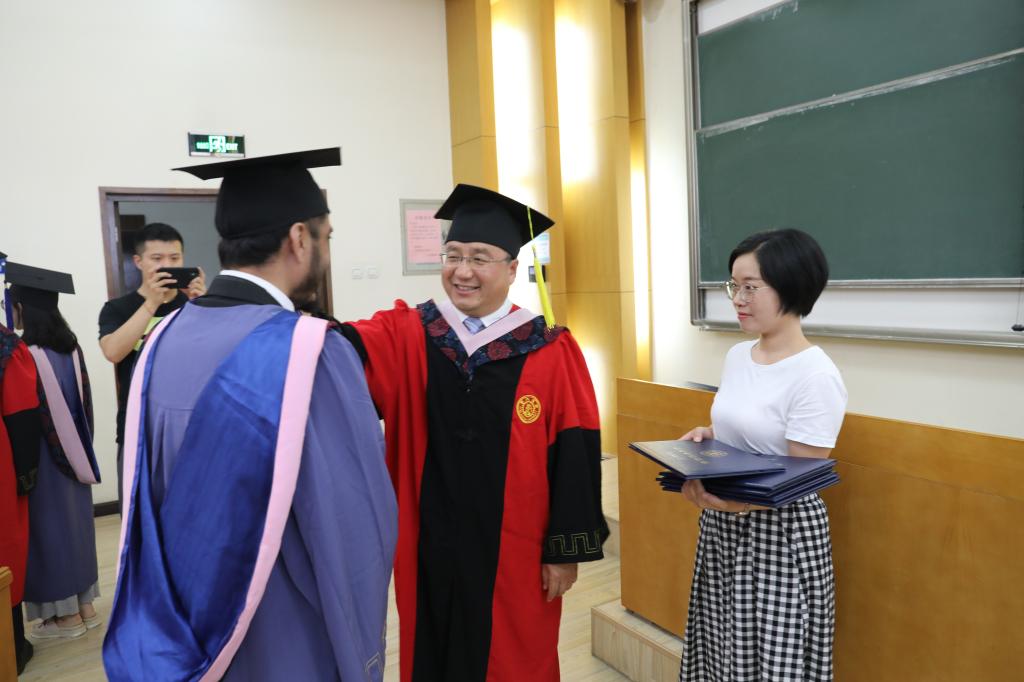 接下来,丁卫副院长带领全体毕业生宣读法科生誓词,王保民、李万强、马治国三位教授为毕业生颁授学位证书。