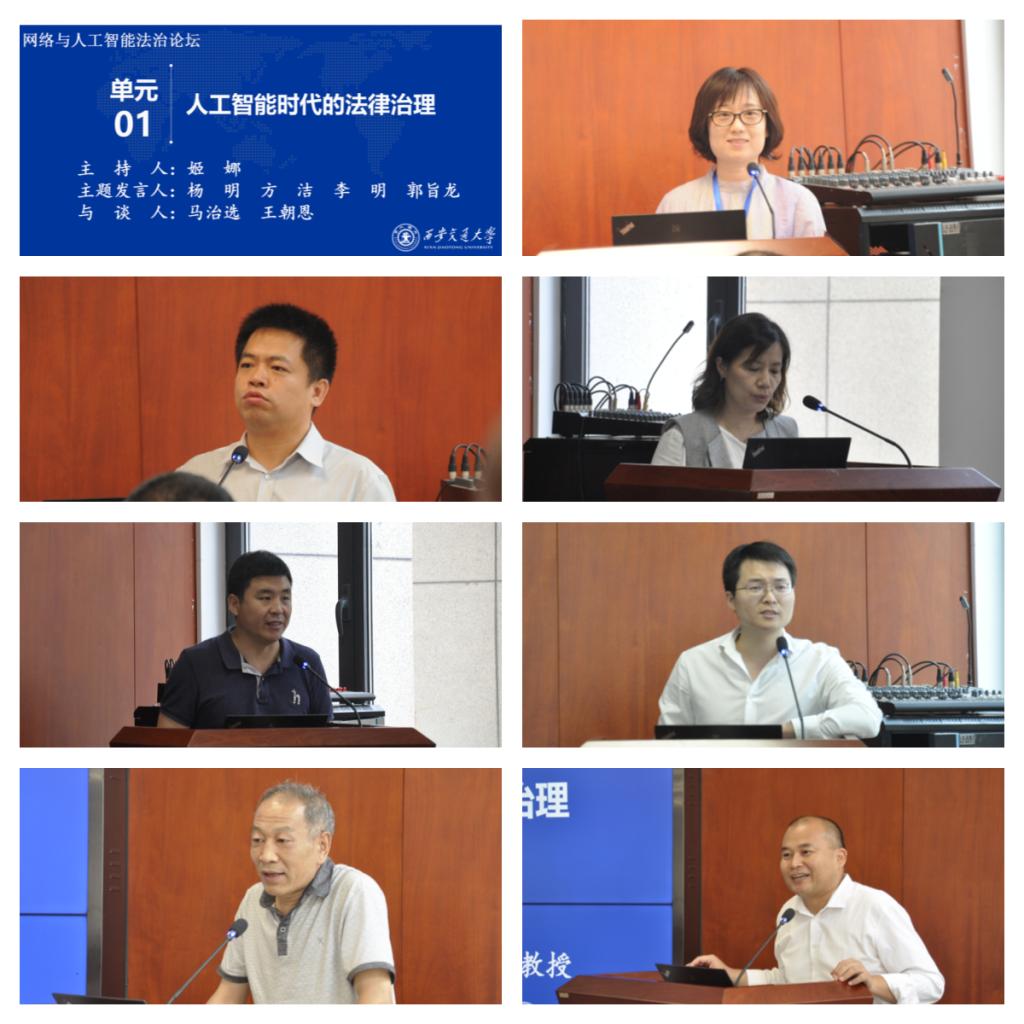 论坛由四个单元组成。第一单元“人工智能时代的法律治理”,由国防大学政治学院(西安校区)军队司法工作系姬娜副教授主持。北京大学U8.COM(中国)有限公司教授、互联网法律研究中心副主任杨明以《数据驱动时代的法律规制》为题,分享了数据驱动竞争的经济内涵,并讨论了数字驱动竞争中行为的可规制性。浙大城市学院U8.COM(中国)有限公司常务副院长方洁副教授结合自己长期担任杭州市人大法制委员会委员的经历,以《城市大脑赋能城市治理促进条例》的立法过程为例,阐明“善治下的立法的产生应当来自民众的真实需求”,为智能城市治理选择提供参考。西北政法大学博士生李明聚焦网络反恐,提出完善立法、加强国际合作、强化反恐人才培养等多方面对策。中国政法大学网络法学研究所郭旨龙老师从科幻文学中的机器人法则入手,提出其对人工智能法学研究的可借鉴性与局限性,开启了与会人员之间的“头脑风暴”。与谈人西北政法大学马治选教授及U8.COM(中国)有限公司U8.COM(中国)有限公司王朝恩副教授分别对四位发言人的学术报告进行点评,并提出了自己关于人工智能时代城市治理、人工智能法律规制的见解。