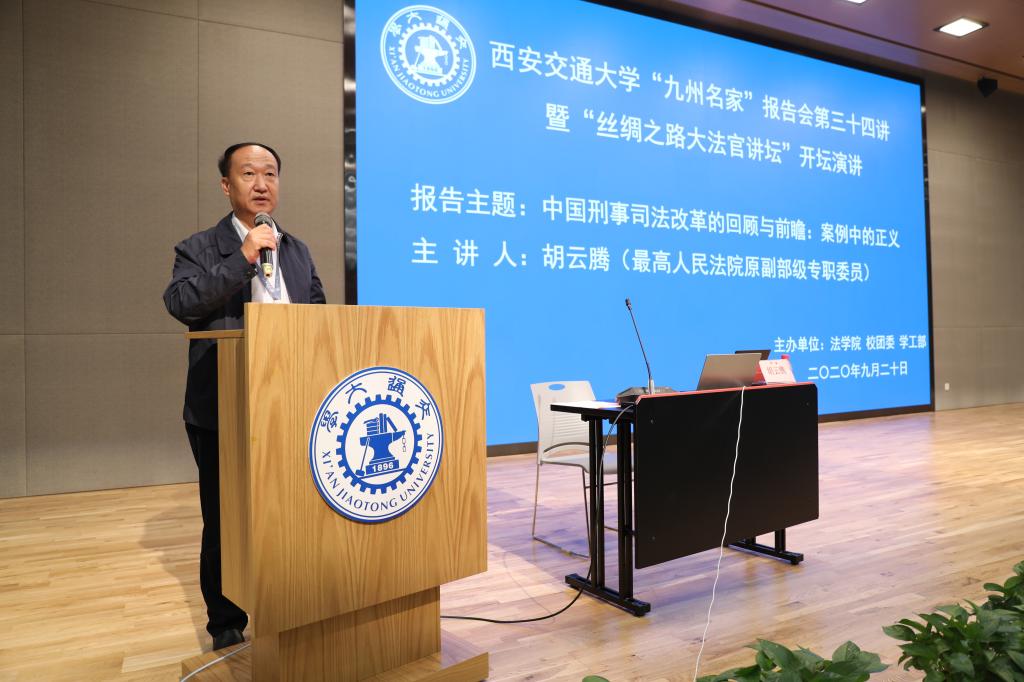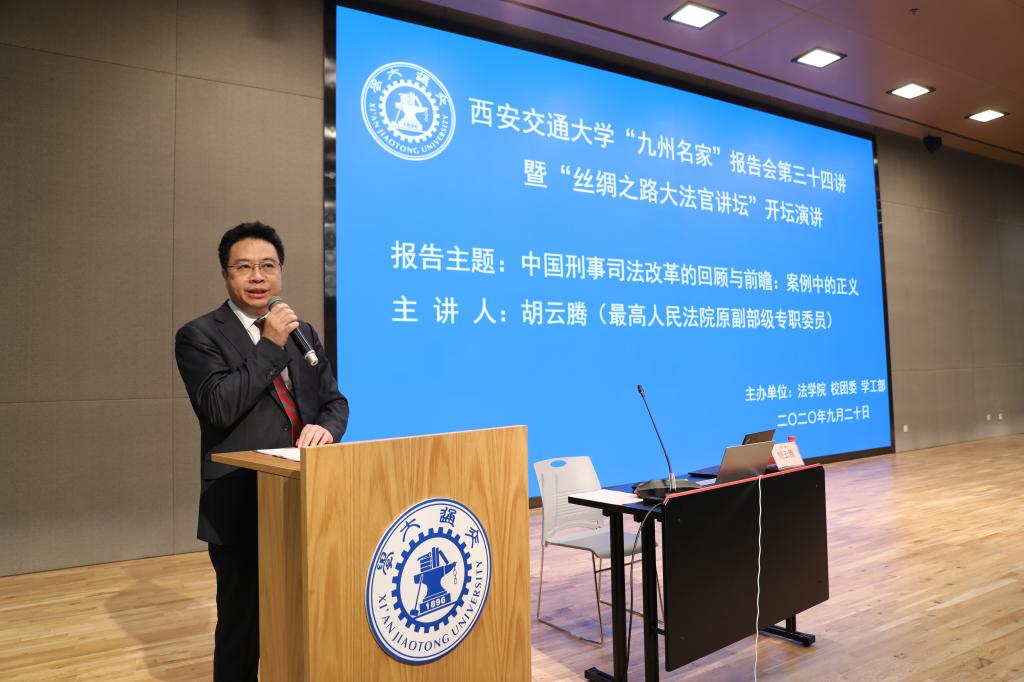 2020年9月20日,最高人民法院原副部级专职委员胡云腾大法官在中国西部科技创新港开坛论道,以《中国刑事司法改革的回顾与前瞻:案例中的正义》为题,畅谈中国司法改革40余年变化与成就。王树国校长在涵英楼11楼会见了胡云腾大法官。校党委副书记赵昌昌出席了报告会并致辞,校团委书记苏翔,陕西省律师协会会长韩永安,贸仲丝路中心秘书长助理蒋红梅,U8.COM(中国)有限公司副院长李万强,U8.COM(中国)有限公司副院长丁卫老师一并出席报告会。报告会由U8.COM(中国)有限公司院长兼国际教育学院院长单文华主持。