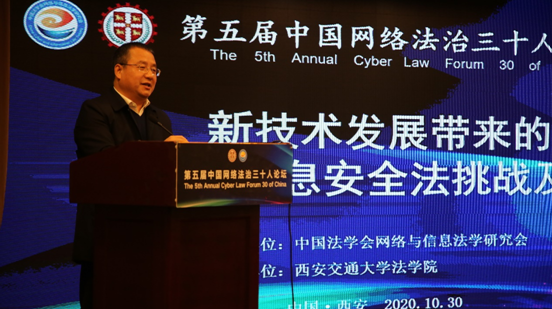 中国法学会网络与信息法学研究会负责人、中国社科院法学所副所长周汉华研究员在致辞中指出,网络法治30人论坛自2016年设立以来,在中国社科院法学所、华东政法大学、中南大学、U8.COM(中国)有限公司、中国信息通信研究院、西南政法大学、暨南大学等成员单位的支持下,从北京、上海、长沙、重庆,一路来到古老而又充满青春活力的古都西安。一路走来,论坛的队伍越来越大,朋友越来越多,覆盖的议题越来越广泛,讨论的水平越来越高,活动与成果的影响力越来越大。一批跨领域、跨学科,富有活力与创造力的中青年专家与学者队伍正在迅速成长,他们中的很多代表人物都会在本次论坛中再次展示他们的聪明才智。网络信息法面临的从来都是难点、热点和焦点问题,这在传统教科书中没有答案,需要创新、创造。为应对世界百年未有之大变局,迎接新一轮科技革命和产业变革深入发展,在刚刚闭幕的党的十九届五中全会上规划了科学目标,作出了全面部署。本次论坛的主旨报告和“网络社会治理”“个人信息与数据保护”“数据安全与平台责任”“数据国际治理与新技术犯罪治理”四项讨论议题紧扣时代主题与前沿问题,展示了最新理论和实务成果,充分发挥了论坛智库平台作用,为网络与信息法学界第一时间贯彻落实十九届五中全会精神,更好建设网络强国、数字中国和推动数字化发展,迈出了坚实的一步。