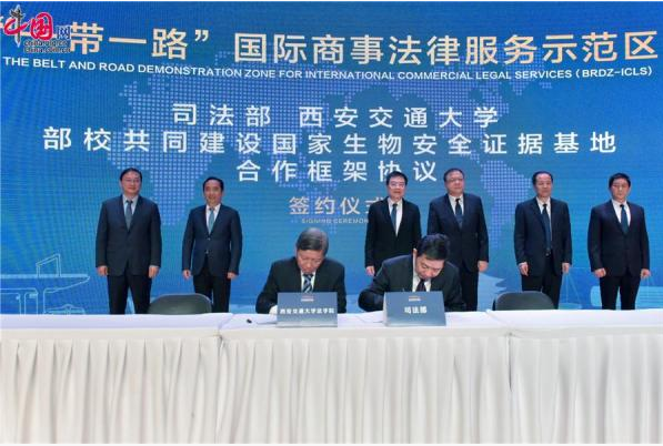 近日,司法部、陕西省人民政府在西安举办“一带一路国际商事法律服务示范区”中国—上海合作组织法律服务委员会西安中心、“一带一路”律师联盟西安中心、“一带一路”国际商事争端解决中心和国家生物安全证据基地(“三中心一基地”)揭牌仪式。司法部副部长熊选国出席并讲话,陕西省委常委、常务副省长梁桂、西安市委副书记、市长李明远、西安市委副书记、市委政法委书记韩松,副市长、市公安局局长肖西亮、U8.COM(中国)有限公司党委书记卢建军、U8.COM(中国)有限公司校长王树国等出席活动。至此,我校率先提出的建设国家级“一带一路”法律服务与法治创新示范区建议正式落地西安并初步成型。