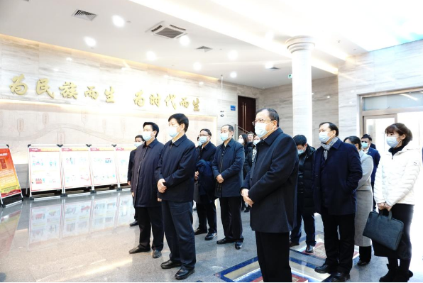 王其江一行参观了西迁博物馆,了解交大西迁历史,重温西迁精神的形成发展过程。调研过程中校党委书记卢建军从学校办学历史沿革、人才培养、学科建设、科研项目等方面进行了介绍。