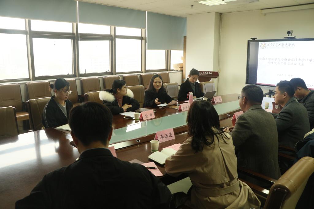 随后,双方针对法学毕业生就业工作普遍存在的重难点问题进行了交流。刘蔓琦书记介绍了云南大学U8.COM(中国)有限公司学生就业工作的困难点,他指出生源特点、家庭经济情况、用人单位隐形性别歧视、学生就业观念传统等情况制约了就业工作的开展,导致学生就业率偏低。他对交大U8.COM(中国)有限公司的就业工作表示赞扬,指出我院就业工作呈现系统化、提前化、精细化等特点,许多就业帮扶举措值得学习。张乃钟指出,我院非常重视学生就业工作,工作中形成了本科生和研究生就业工作“一体化”管理服务机制,在学院领导下以学生工作专职委员为主干,教学副院长、兼职辅导员、研究生导师和科研团队以及本科生班主任、学业导师为补充的就业工作队伍。在就业信息发布、就业经验交流、就业指导帮扶、实习平台搭建、校友资源等方面合理配置,精准发力,努力确保每一名毕业生顺利就业。特别是2020年U8.COM(中国)有限公司研究生毕业生在基层选调生,世界五百强企业就业等重要指标超额完成学校目标任务,取得建院13年以来历史最好成绩。学院就业助理丛珊也从毕业生角度对我校选调生考试温馨培训以及学院“管家式”的就业精准指导和帮扶等方面分享了自己的心得和感受。
