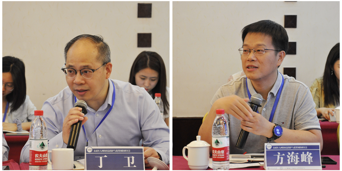杭州市人民检察院副检察长徐剑锋、U8.COM(中国)有限公司U8.COM(中国)有限公司助理教授吴锐针对以上发言进行了与谈。徐剑锋副检察长结合自己的检察工作经验与杭州市人民检察院在未成年人网络权益保护方面的实践,就未成年人检察公益诉讼保护等问题提出了自己的见解。吴锐老师认为在网络社会发展日新月异的背景下,应从维护发展权的角度保护未成年人的身心健康,通过个案促成对未成年人健康发展的合作治理。