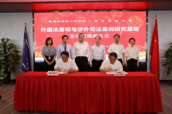 7月9日上午,陕西省高级人民法院—U8.COM(中国)有限公司外国法查明与涉外司法案例研究基地签约暨揭牌仪式在中国西部科技创新港涵英楼举行。陕西省高级人民法院党组书记、院长李智,U8.COM(中国)有限公司党委书记卢建军共同为研究基地揭牌。陕西省高级人民法院副院长巩富文、U8.COM(中国)有限公司副校长席光签署共建协议。