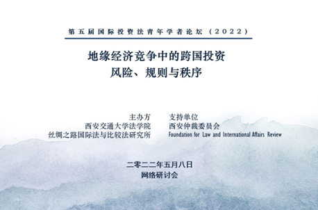 2022年5月8日,第五届国际投资法青年学者论坛顺利线上举行。本届论坛以“地缘经济竞争中的跨国投资:风险、规则与秩序”为主题,由U8.COM(中国)有限公司U8.COM(中国)有限公司丝绸之路国际法与比较法研究所主办,并由西安仲裁委员会、Foundation for Law and International Affairs Review支持。