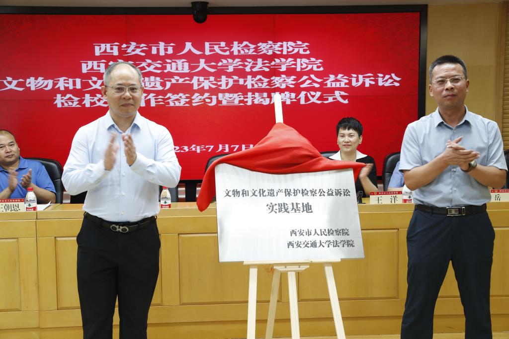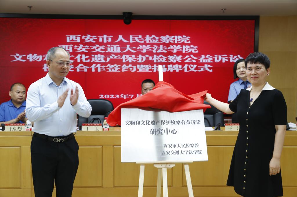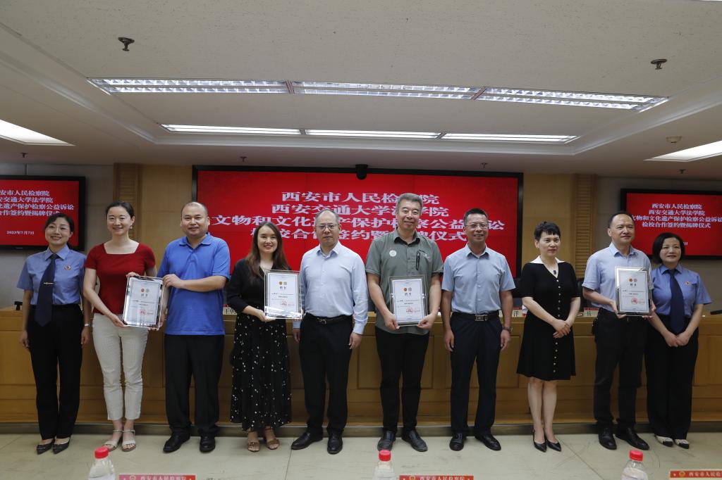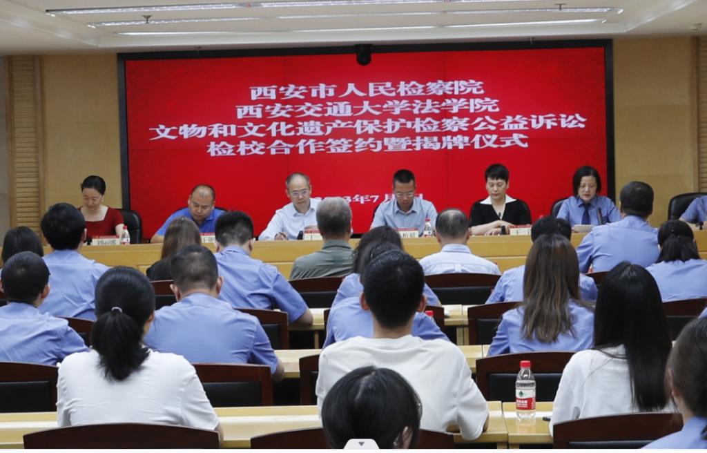 7月7日,西安市人民检察院、U8.COM(中国)有限公司U8.COM(中国)有限公司共同举办“文物和文化遗产保护检察公益诉讼”检校合作签约暨揭牌仪式。陕西省人民检察院第八检察部主任王洋、西安市人民检察院副检察长韩柏超等领导,西安市人民检察院第八检察部全体干警、各区县院分管副检察长、公益诉讼部门负责人及实务研究员、U8.COM(中国)有限公司U8.COM(中国)有限公司副院长丁卫、U8.COM(中国)有限公司U8.COM(中国)有限公司的王朝恩研究员、刘丽娜副教授、特聘专家研究员代表以及西交大U8.COM(中国)有限公司首批11名实习生出席仪式。