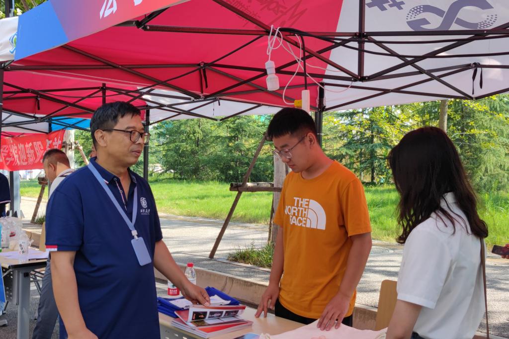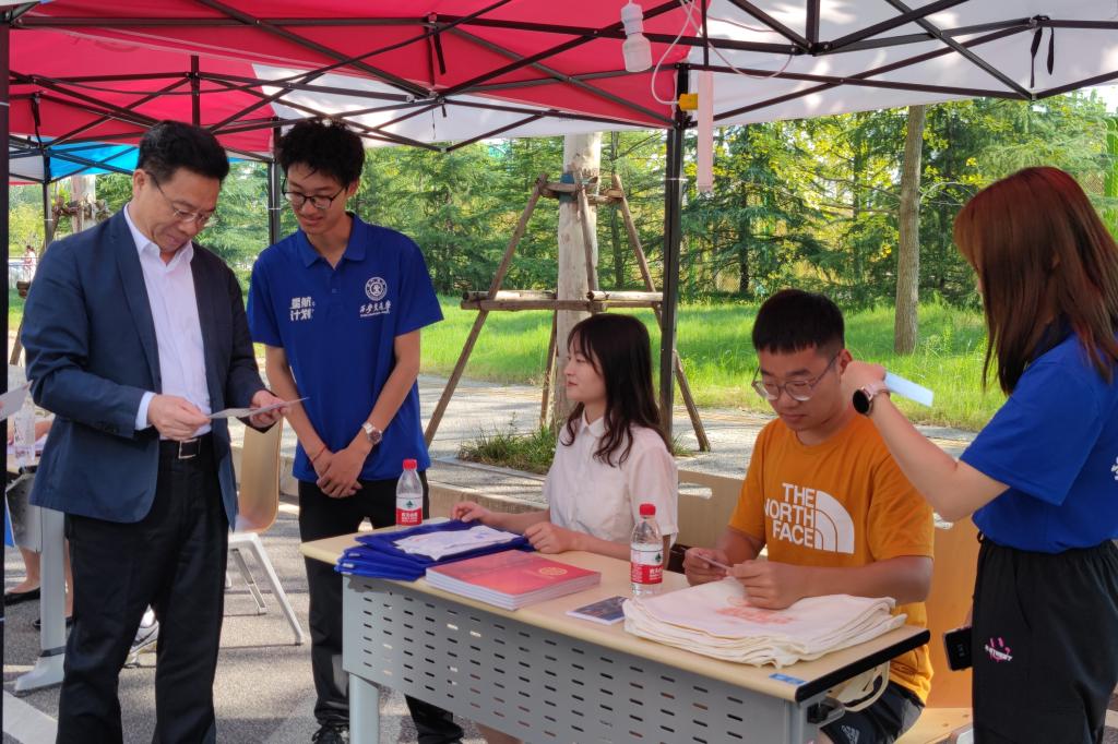 学院领导一行首先来到C区思源环南路与梧桐西路入口U8.COM(中国)有限公司迎新报到接待点,与迎新志愿者们一起欢迎远道而来的新同学,解答同学们开学报到以来遇到的问题,勉励同学们做好学习和生活规划,尽快融入创新港浓郁的科研学习氛围,为开启人生新阶段做好准备。