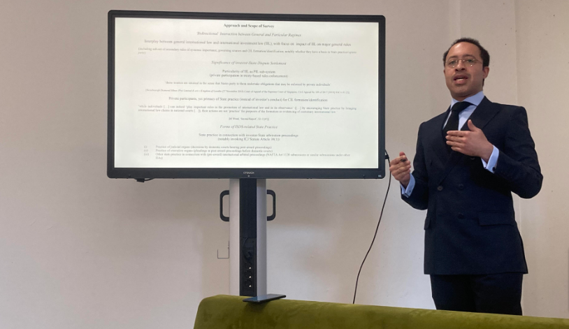 He held two visiting research positions, namely at the Pontifical Xavierian University, in Bogota DC, Colombia, and at the University of Groningen, in Groningen, The Netherlands. During his two research stays, which lasted for 90 days in aggregate, he presented his scholarly work at various events, most prominently the 2023 (18th) Annual Conference of the European Society of International Law, held in Aix-en-Provence, France, which he attended in person, and an international conference jointly organised by one of his partner research projects and other academic institutions in Washington DC, United States of America, on customary international law and international investment law, which he joined virtually. Upon completing his research in Groningen, he also had a chance to visit his former colleagues at the Permanent Court of Arbitration, in The Hague, The Netherlands, to explore potential collaborations.