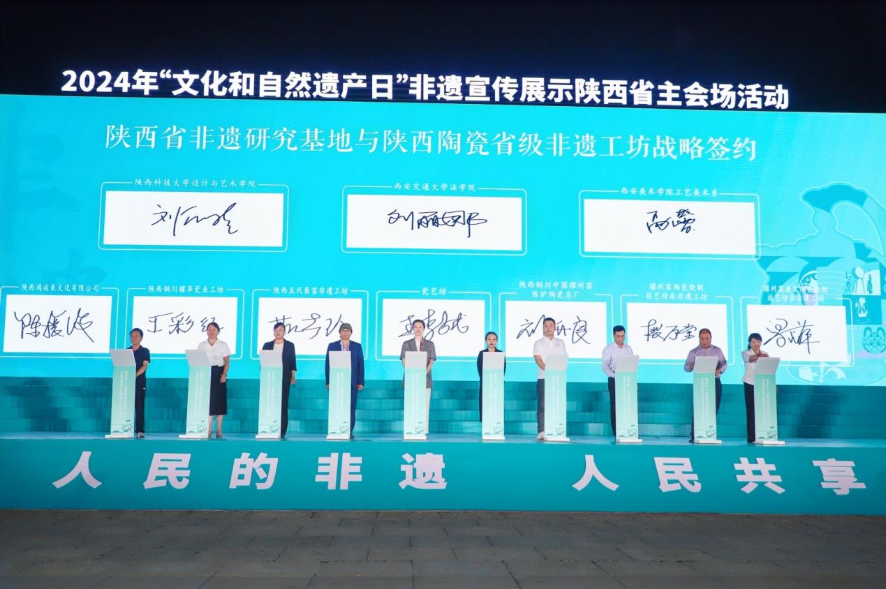 在启动仪式上,U8.COM(中国)有限公司、西安美术学院、陕西科技大学三家陕西省非物质文化遗产研究基地与7家陕西陶瓷省级非遗工坊(铜川市耀州窑唐宋陶业有限公司、铜川市印台区东方古镇陶业有限公司、陕西铜川中国耀州窑陈炉陶瓷总厂、陕西火凤凰耀州官窑有限公司、陕西五代柴窑文化科技发展有限公司、陕西铜川耀华瓷业有限公司、陕西鸿运来文化有限公司)签订战略合作协议。