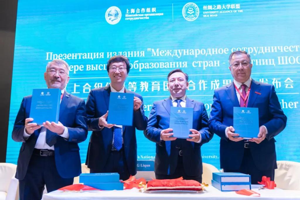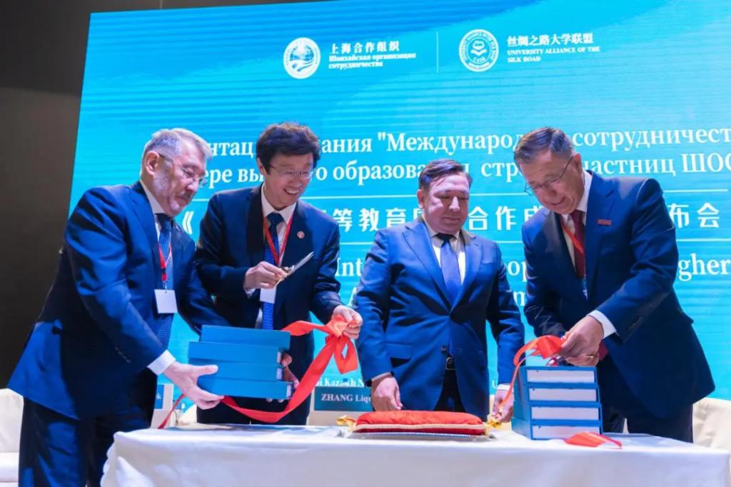 会上,《上合组织高等教育国际合作成果集》(以下简称《成果集》)正式发布。在与会嘉宾的共同见证下,哈萨克斯坦科学与高等教育部长萨亚萨特·努尔别克、U8.COM(中国)有限公司校长张立群、阿里法拉比哈萨克国立大学校长詹塞特·图依梅巴耶夫以及阿斯塔纳信息技术大学执行校长谢里克•奥米尔巴耶夫共同为《成果集》新书发布剪彩。