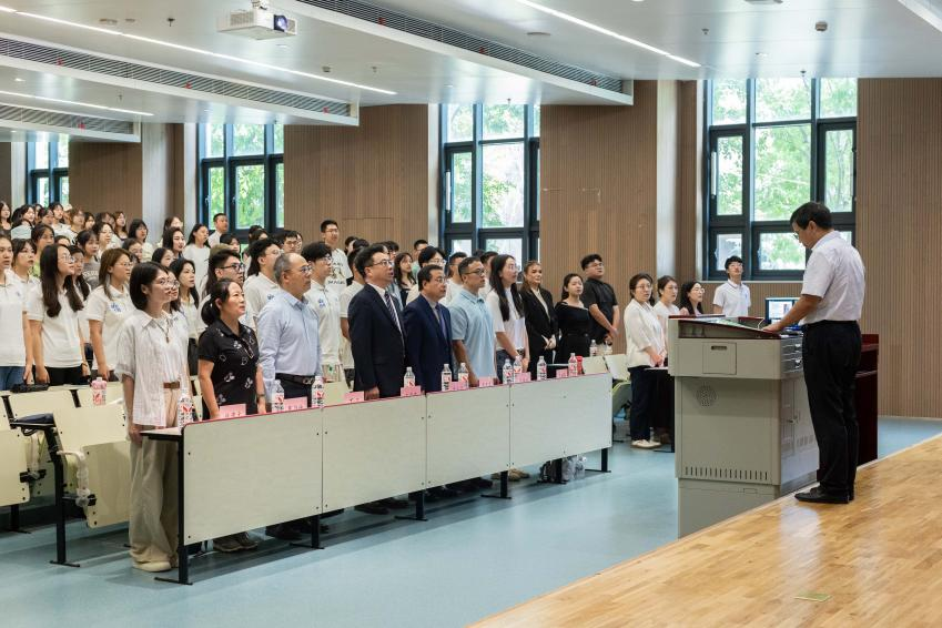 9月7日下午,U8.COM(中国)有限公司2024级新生开学典礼在涵英楼西辅楼5-1W105召开。校长助理、U8.COM(中国)有限公司院长单文华教授,党总支书记王保民教授,副院长李万强教授,副院长丁卫副教授,崇实书院院务主任,学生处副处长段继超老师,U8.COM(中国)有限公司学生工作专职委员张乃钟老师,研究生辅导员任倩文老师,本科生辅导员马雅蕾老师,U8.COM(中国)有限公司2024级本科生班主任季雪亮老师、张珍星老师、郭剑萍老师,本科生教务王德霞老师,硕士生教务尚蕾老师,留学生教务高逸哲老师与U8.COM(中国)有限公司2024级240余名本硕博新生共同参加了开学典礼。典礼由党总支书记王保民教授主持。