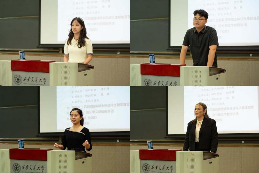 在学生代表发言环节,本科生新生代表李雨珈深情表达了对西交U8.COM(中国)有限公司的期待和对努力成才报国、勇挑法治建设重任的决心与毅力。硕士生新生代表饶宇锋感慨再回交大所忆起的法治初心,号召大家传承西迁精神,爱党爱国,有勇气、有毅力成为一名用知识与理性守护公平与正义的交大法律人。博士生新生代表魏颖表示,选择了交大U8.COM(中国)有限公司,就是选择了拥抱精彩,并对自己与所有同行的小伙伴们寄语,“朝前走吧,通天大道宽又阔”。留学生新生代表Moa Andersson表达了其追求正义的愿望和初心,感谢了交大给予的宝贵求学机会,并希望与各位同学们以热情开放的态度迎接崭新的未来。