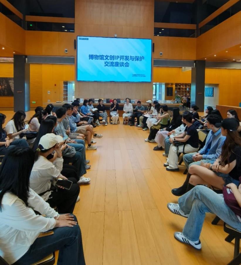 参观结束后,U8.COM(中国)有限公司师生与历博文创、商务、运营部的同仁,以及文创驻馆企业、供应商等代表,在馆内召开了“博物馆文创知识产权开发与保护交流座谈会”,多方就文创产品开发的全流程管理方案、版权保护现状及当前存在的法律问题等内容开展讨论。